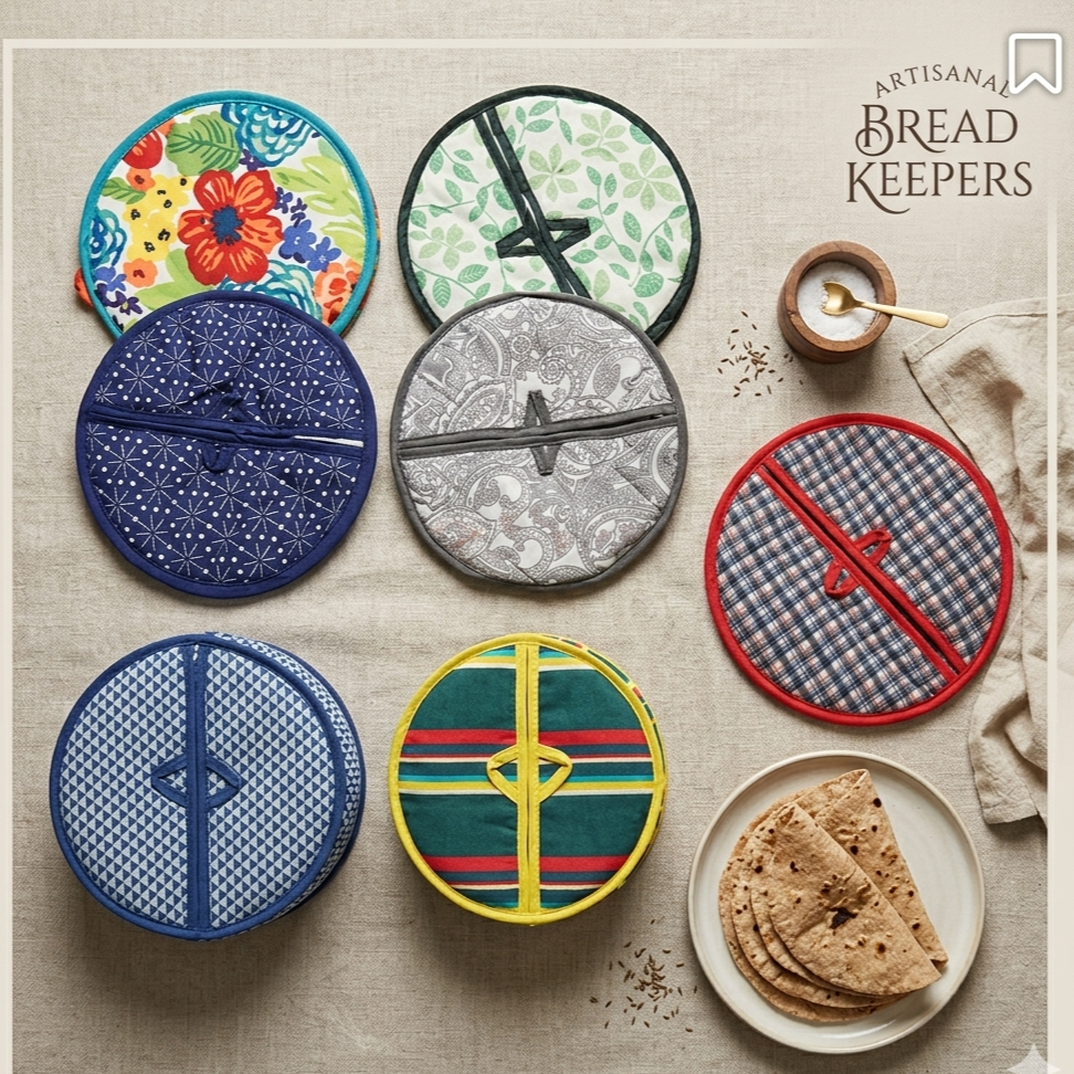 Roti Chapati Cotton Cover Bag With Round Zip Opening Keeps Rotis Fresh And Warm. Made From High-Quality Cotton Fabric, This Bag Is Specially Designed To Store Rotis Chapatis And Flatbreads Safely. The Round Zip Opening Ensures Easy Access While Maintaining Warmth And Freshness. Lightweight And Washable, It Provides A Hygienic Solution For Daily Use At Home Or Outdoor Dining. Perfect For Kitchens, Picnics, and Family Gatherings, It Helps Preserve Taste And Texture While Offering Convenience And Style.
